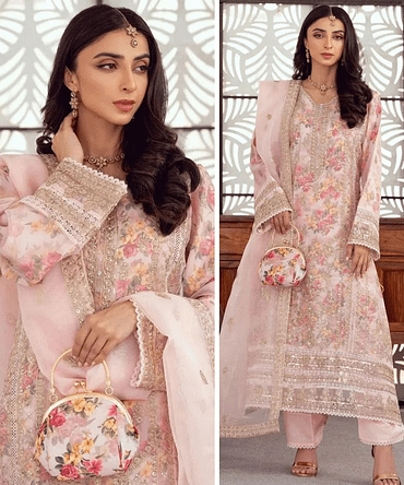 Pakistani Indian Designer Embroidered Organza Semi Stitched Suit Shalwar Kameez